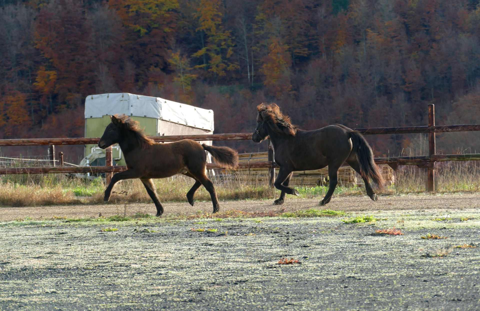 Wir halten die Absetzer bis Juni in einer geschlechter-gemischten Herde: zur Weidezeit teilen wir nach Hengsten und Stuten. Über die Winterzeit haben sie 24/7 Raufutter, Stroh, Mineralien und werden zusätzlich täglich mit Absetzer-Müsli gefüttert. Hufe ausschneiden bzw. Wurmkur erfolgt jeweils direkt vor bzw. nach der Weidesaison. Im Frühjahr werden die Absetzer sorgfältig angeweidet und je nach Witterung - meistens Mai/Juni - auf weitläufige Weiden umgestellt.