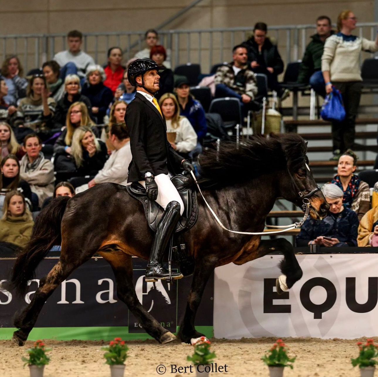 "Langbeiniger Junghengst mit viel Tölt und guter Gangverteilung bei viel Raumgriff und kooperativem Interieur"